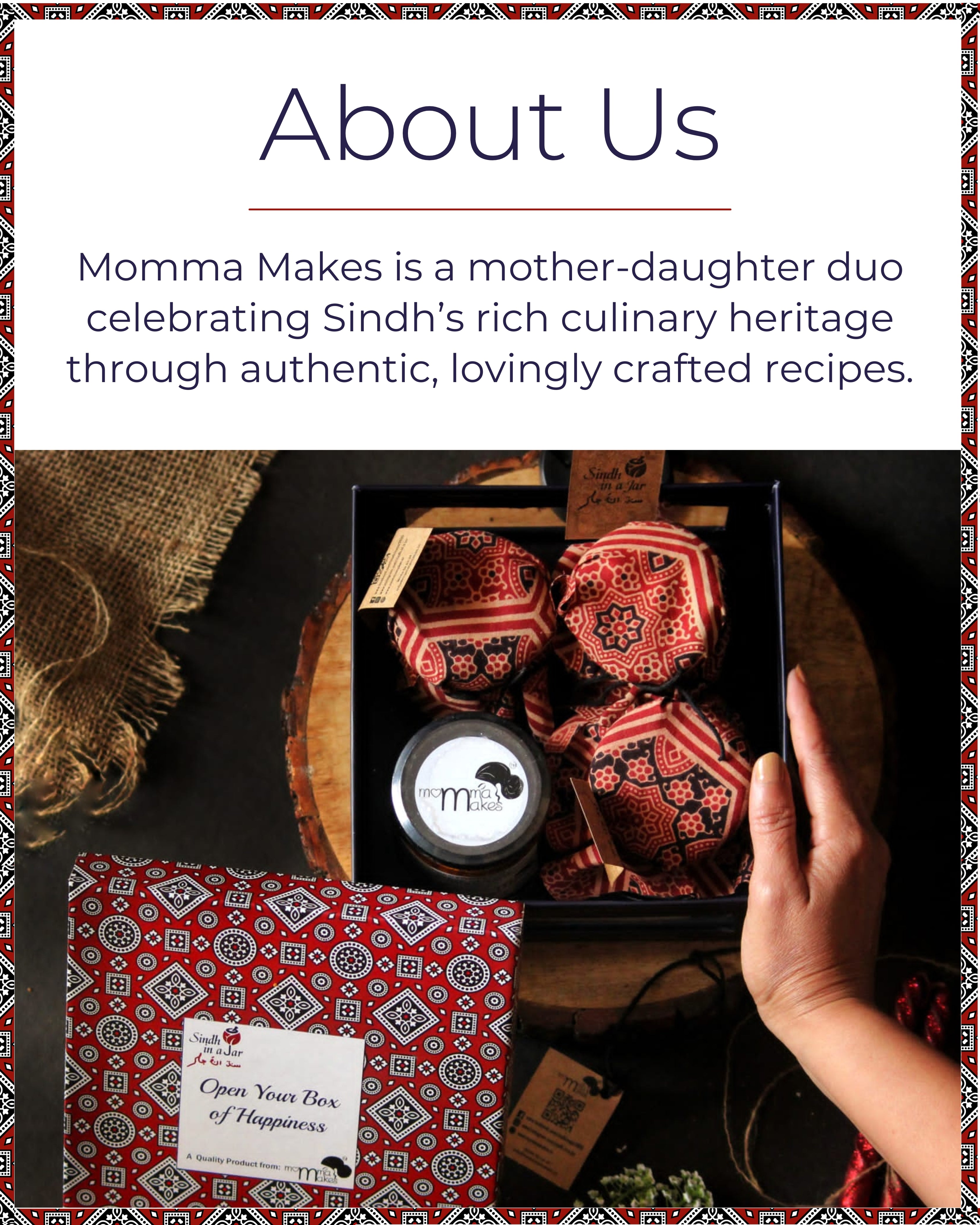 "Rasoi mein jee, Sindh ji rooh wasey." (The spirit of Sindh lives in its kitchen.) With every bite, we invite you to not just eat — but remember. Because Sindh in a Jar is not just a brand. It’s vasiyat - a legacy.